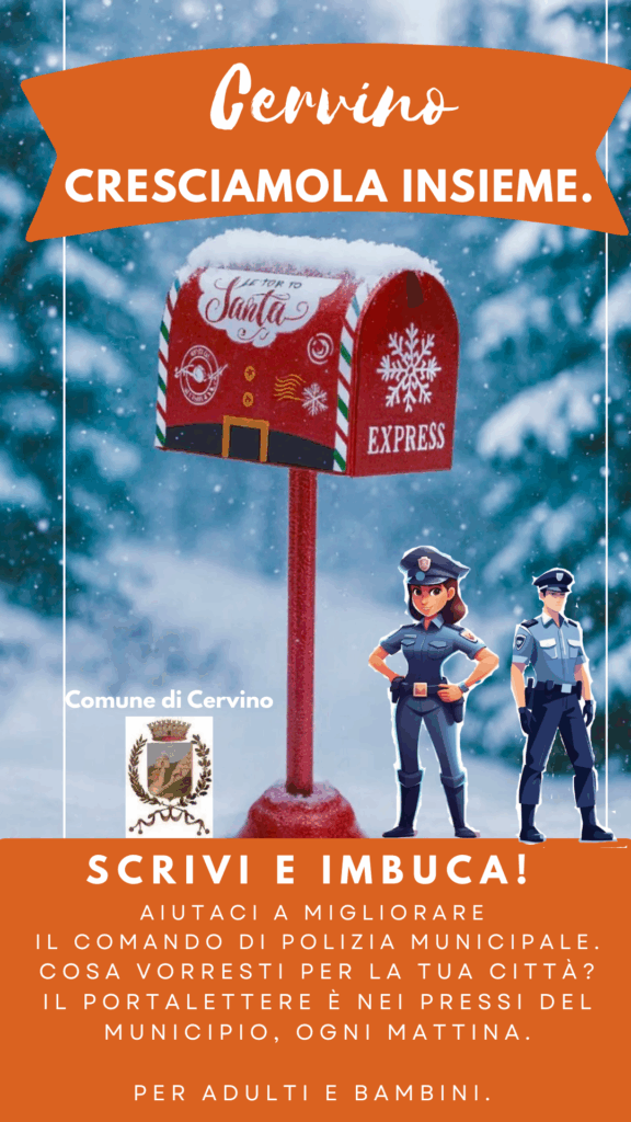 Cervino – Cresciamola insieme. Dic 1, 2025 | News Aiutaci a migliorare il Comando di Polizia Municipale Post Views: 5